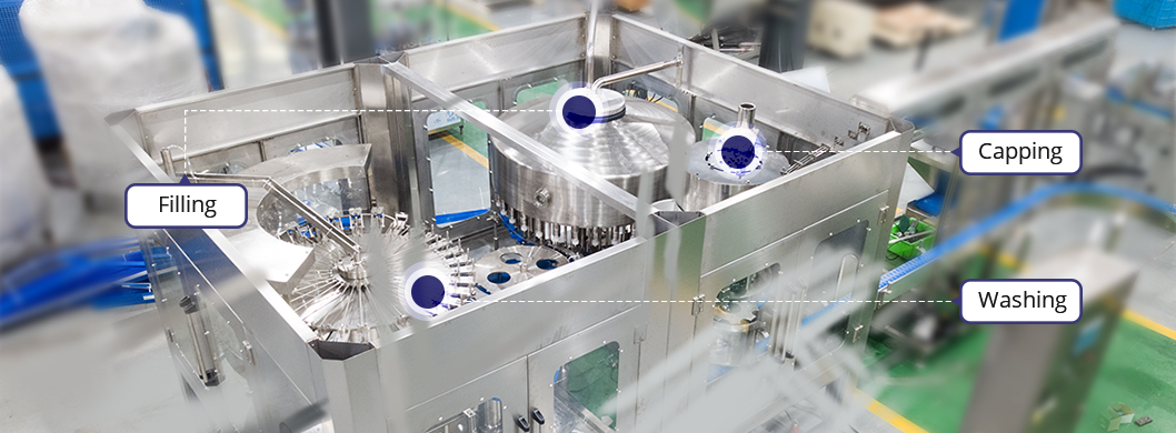 灌裝機(jī)主要用于灌裝飲用水。它結(jié)合了沖洗,灌裝和封蓋作為一個適用于PET或其他塑料瓶的自動化設(shè)備。采用新型常壓灌裝操作,使其能夠比其他同級別的機(jī)器更高效,更穩(wěn)定地填充更多輸出。